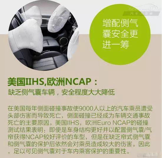 前排側氣囊通常設備在前排座椅外側,目的是減緩旁邊面碰擊形成的損傷,隔離軀干與門(mén)板直接磕碰。能夠有效地維護前排乘客的安全?,F在,在國內部分中高端或許高配車(chē)型才裝備了前排側氣囊,普通家轎中低配根本就沒(méi)有側氣囊。