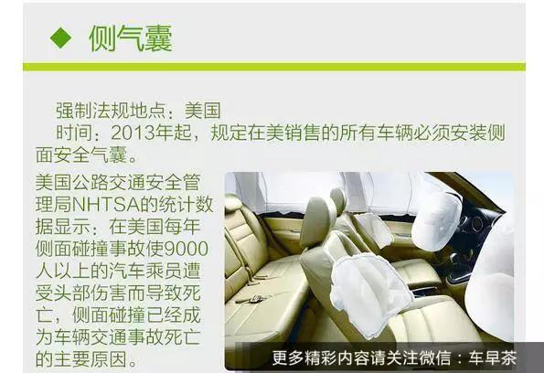 本來(lái),在國外,一些十分必要且多見(jiàn)是安全裝備,是法令強行規則設備的,并不在以這些安全裝備作為加價(jià)的籌碼。在歐盟、美國以及加拿大等國現已由法令明文規則,關(guān)于未設備下列7項安全裝備的的乘用車(chē),法令規則不允許其銷(xiāo)上市售以及注冊。這時(shí),您是不是想大聲的呼叫:“萬(wàn)惡的資本主義??!”下面,就和茶哥一起來(lái)看看,終究國外的法令強行規則車(chē)輛設備了哪些安全裝備?