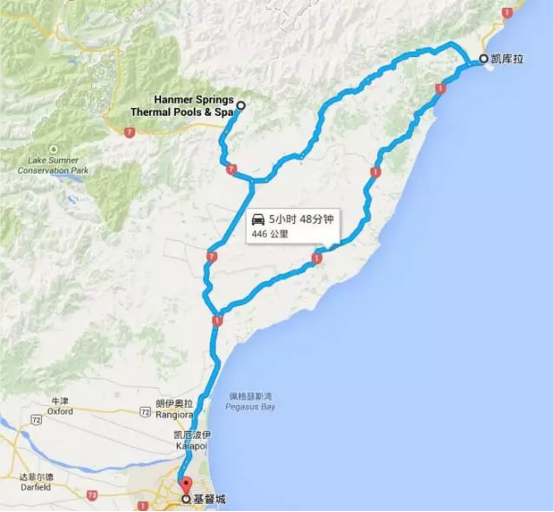 新西蘭租車(chē)自駕的第二條推薦路線(xiàn)也是從基督城-凱庫拉-漢默溫泉-到基督城
