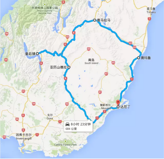 這條新西蘭租車(chē)自駕路線(xiàn)是從但尼丁-奧瑪魯-奧瑪拉瑪-皇后鎮-亞歷山德拉-到但尼丁